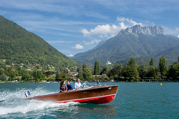 L’esquif fend les eaux du lac d’Annecy. Tournant le dos au massif des Bornes pour mieux embrasser du regard celui des Bauges, l’embarcation file droit vers la limite du Grand et du Petit Lac. Symbolique, le passage s’orne d’un palace dominé par le roc de Chère. Précieuse, cette avancée rocheuse boisée abrite une faune et une flore exceptionnelle. Classé en réserve naturelle nationale depuis la fin des années 1970, le site abrite des hirondelles de rochers, des goélands leucophées, des faucons pèlerins et des milans noirs. L’un de ces rapaces survole le palace alors que le bateau a le bon ton de trouver le ponton du port privé du Palace de Menthon.