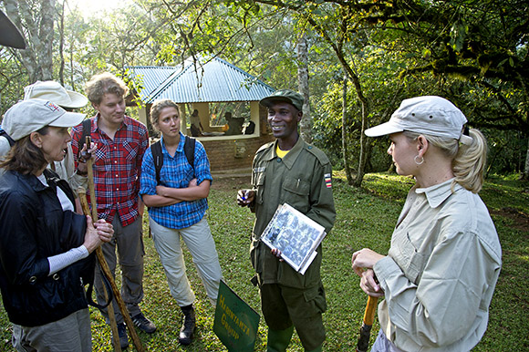 Ces hommes tout-terrains emmènent les éthologues en herbe au cœur de la forêt de Bwindi, sur les traces de trackers partis bien avant. Guidés par ses éclaireurs, les groupes parviennent en quelques heures jusqu’aux groupes de gorilles. Ces placides grands singes se laissent alors observer par des marcheurs épuisés mais heureux.